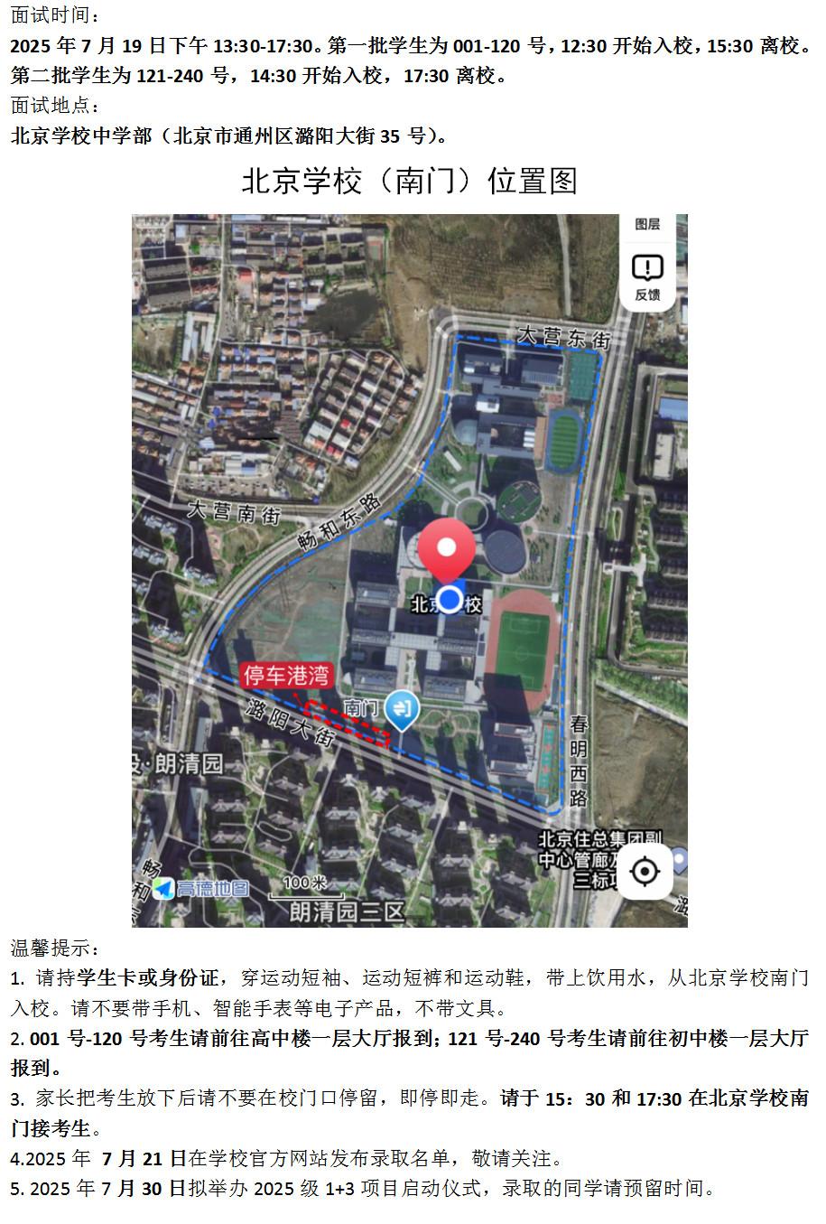 2025年中国人民大学附属中学通州校区“1+3”项目面试名单及面试安排