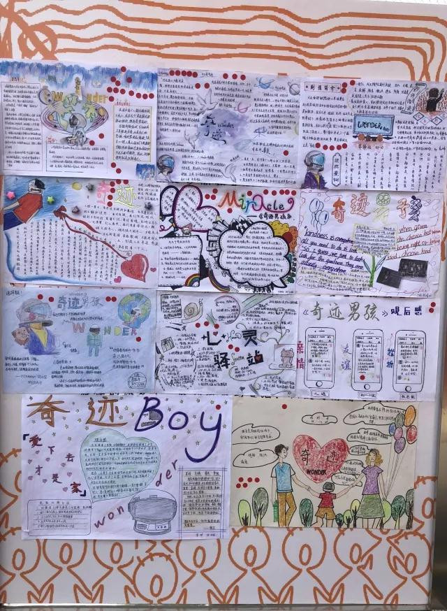 本次心理文化节初一年级进行的活动是“心·奇迹”活动,是由家长陪伴孩子一起观看心理电影《奇迹男孩》后,共同制作手抄报来完成的。青春期,是一次美好而重要 的成长,在这一期间父母的有效陪伴尤为重要。家长与孩子共同动手、一起思考的过程就是十分有意义的陪伴。