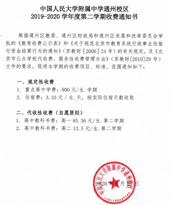 2019-2020年第二学期学费、住宿费、课本费交费通知